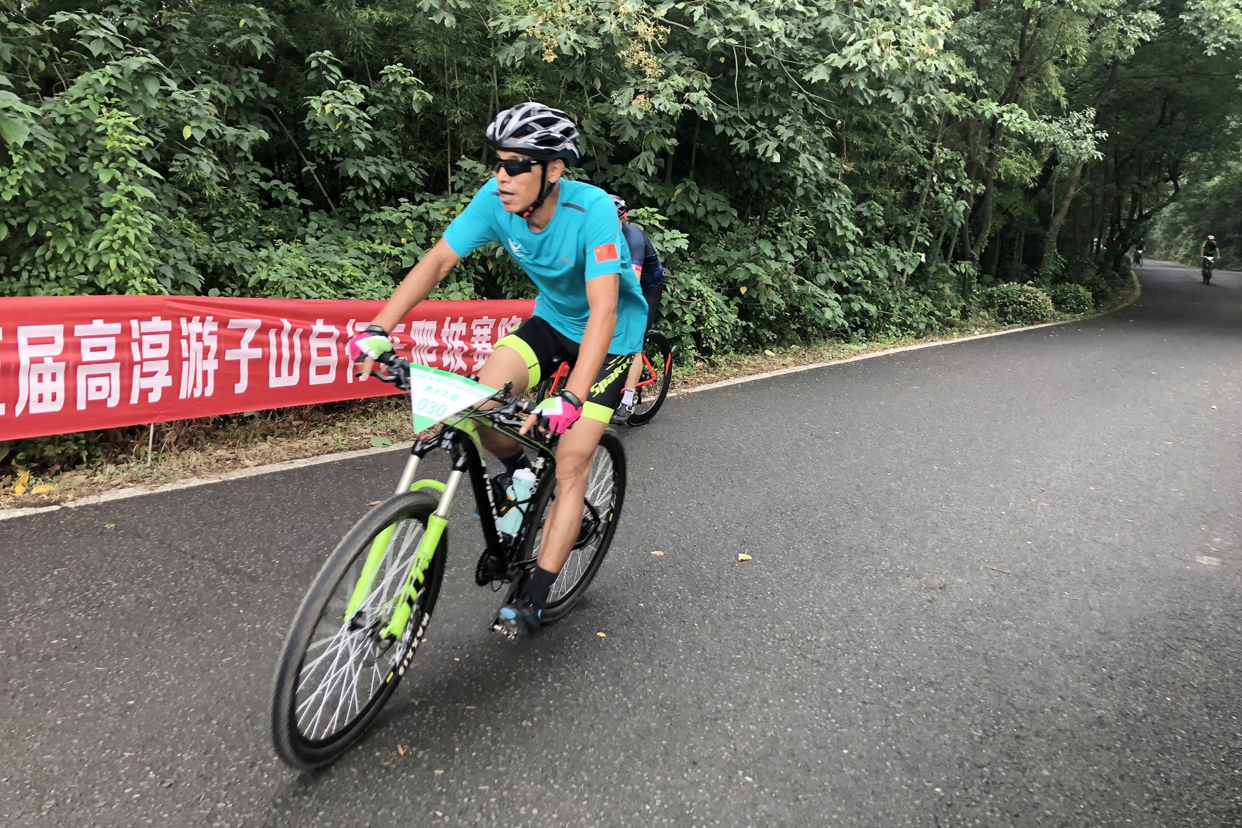 上午8点25分,随着一声枪响,男子公路车组率先开赛。在出发点严阵以待的参赛选手们一个个就像离弦的箭迅速冲了出去,阵势威武壮观,犹如一条长龙在青山秀水间穿行。随后,男子乙组、女子组陆续鸣枪出发,尽管天气闷热,但丝毫影响不到参赛选手们的骑行热情。比赛过程中,多弯、坡陡的赛道无疑增加了挑战难度,但选手们毫不慌张,凭借自己丰富的骑行经验,不断调整呼吸、速度,向终点进发。